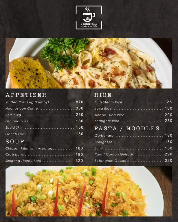 As you ascend to the cafe on the third floor, you're greeted with a breathtaking panoramic view of the iconic Mayon Volcano—a stunning backdrop that enhances your dining experience. The moment you step inside, you’ll be enveloped by a cozy ambiance, adorned with tasteful decor that feels both modern and homey. Customer reviews rave about the beautiful aesthetic and inviting atmosphere. It's clear that at J Spazio, every detail has been curated to ensure that you feel relaxed and comfortable.